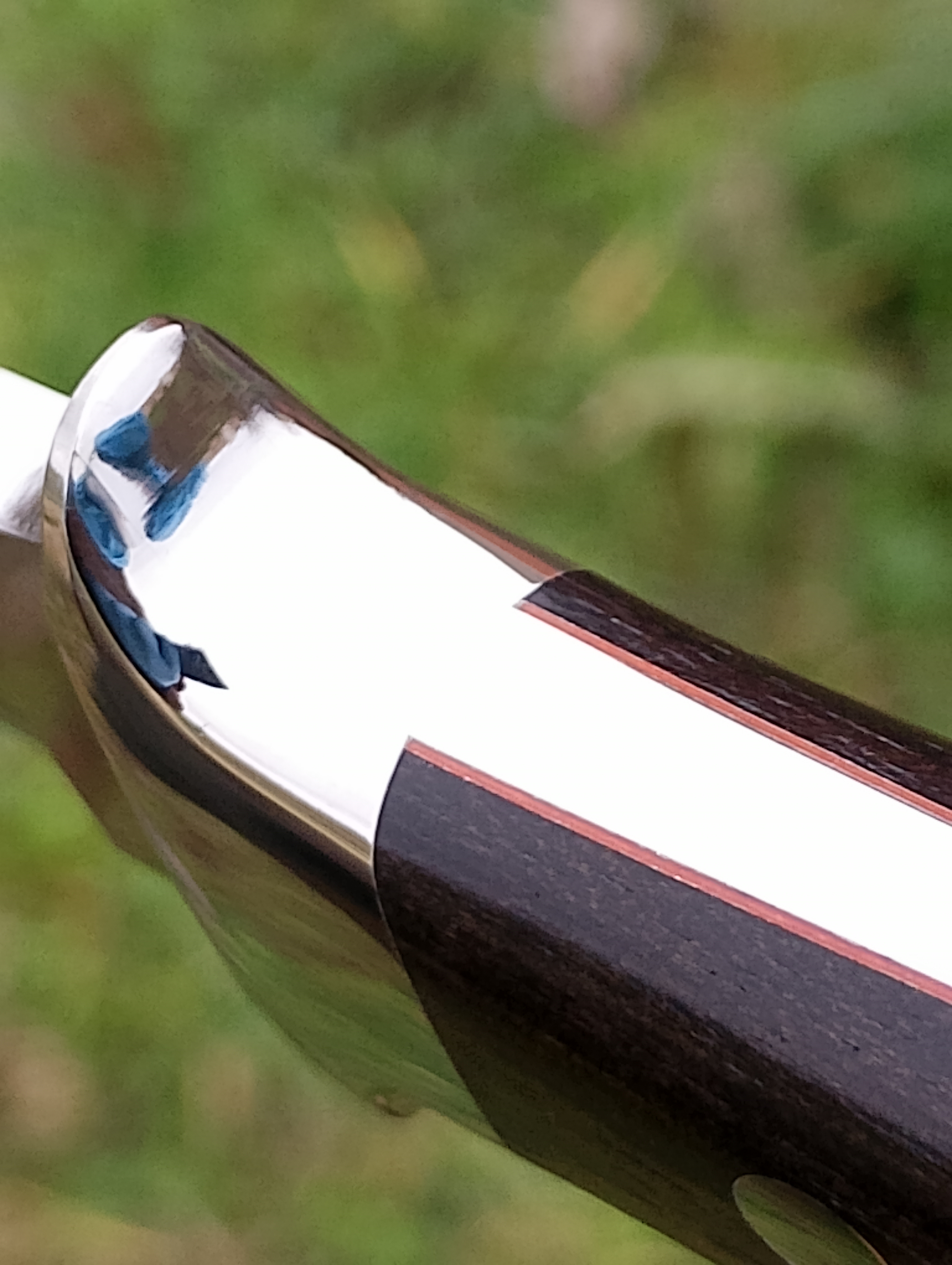 Medidas: hoja 102 mm, mango 106 mm, ancho de pala 20, grosor 4,8 mm, peso 114 gramos