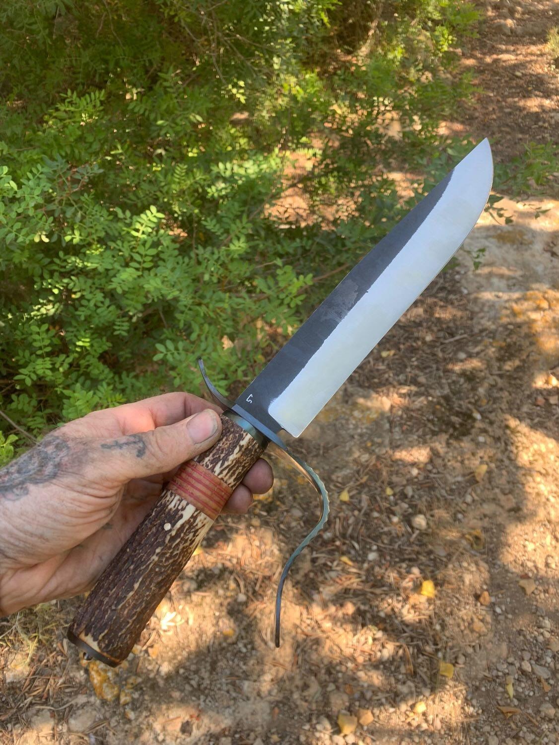 Descripción: Cuchillo Bowie con soporte, ideal para colección.
