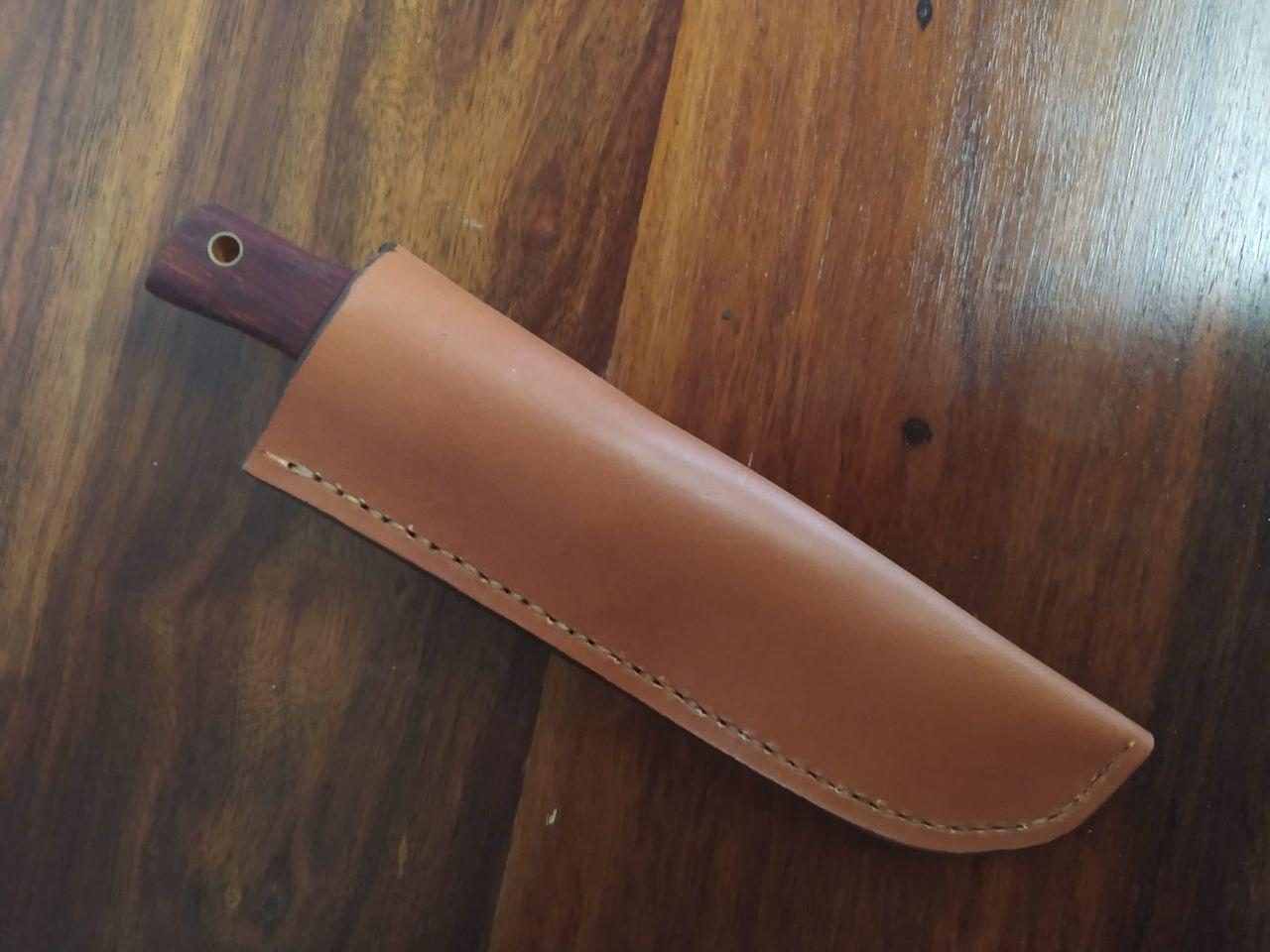 Funda: Cuero de 3 mm teñida y cosida a mano